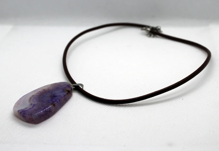 13 - שרשרת עור עם אגט צבוע