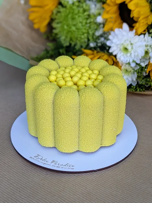 סידור פרחים בקופסא עגולה בשילוב מקרונים