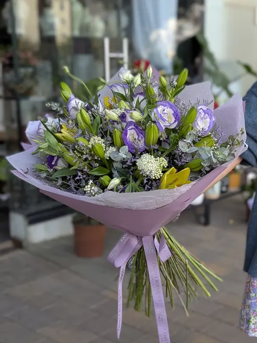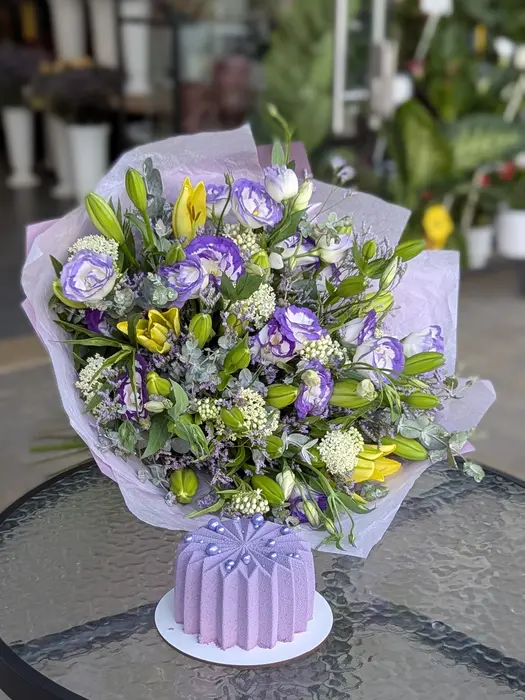 סידור פרחים בקופסא עגולה בשילוב עוגיות