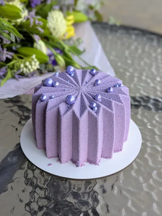 סידור פרחים בקופסא עגולה בשילוב מקרונים