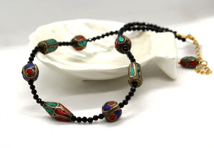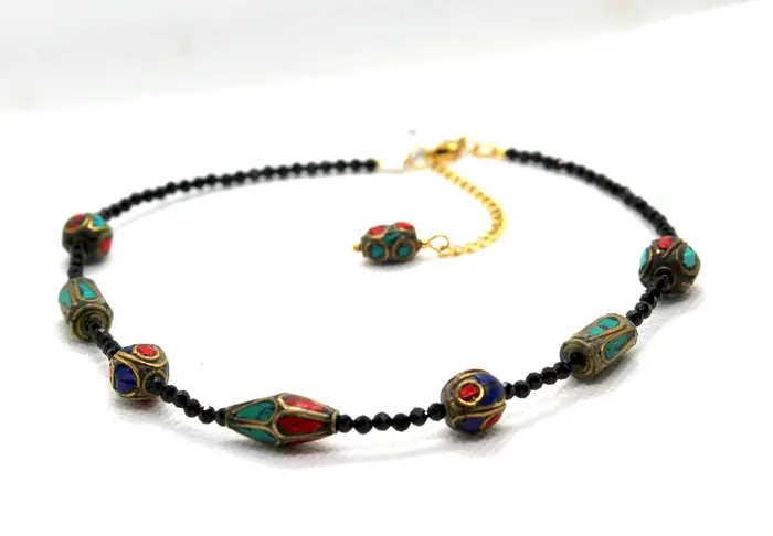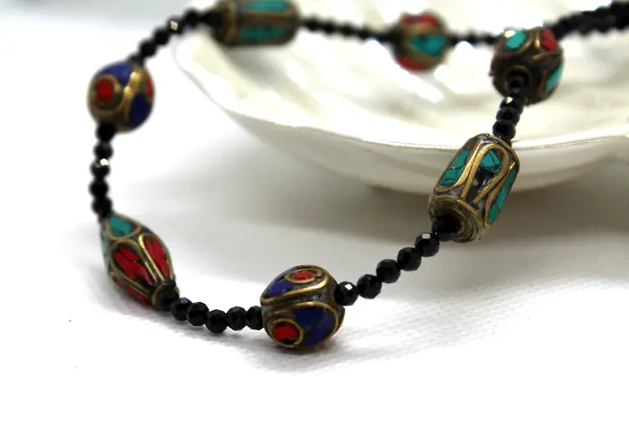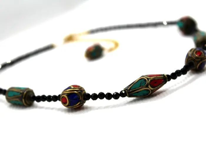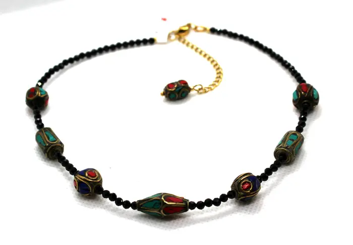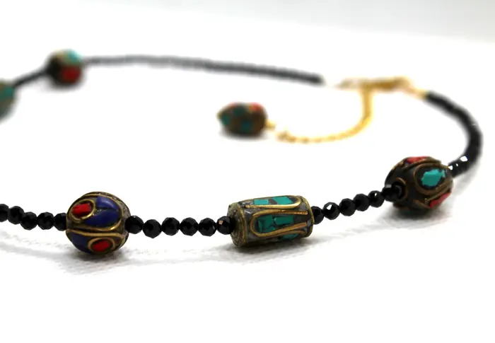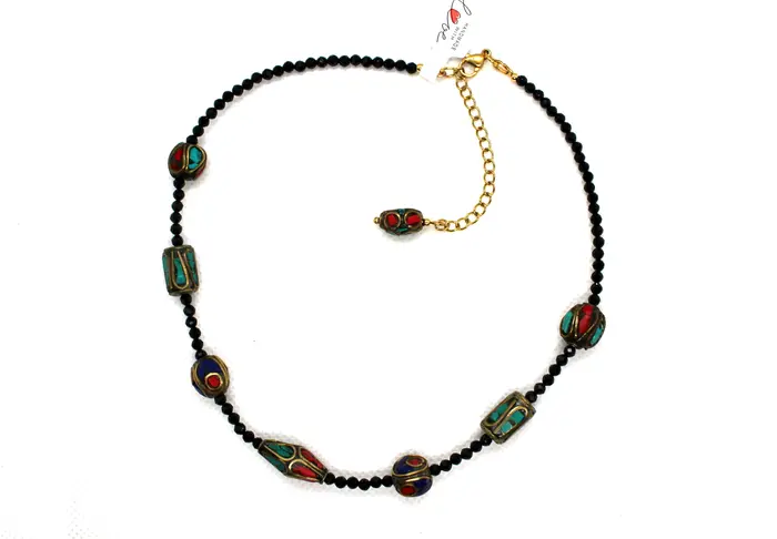 10 - שרשרת מספינל שחור וחרוזים בציפוי זהב