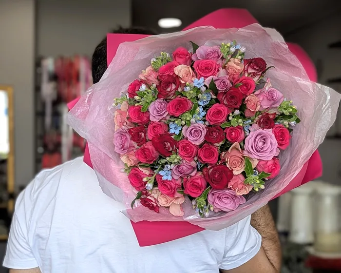* בתמונה מופיעה זר של 50 ורדים - מידה L