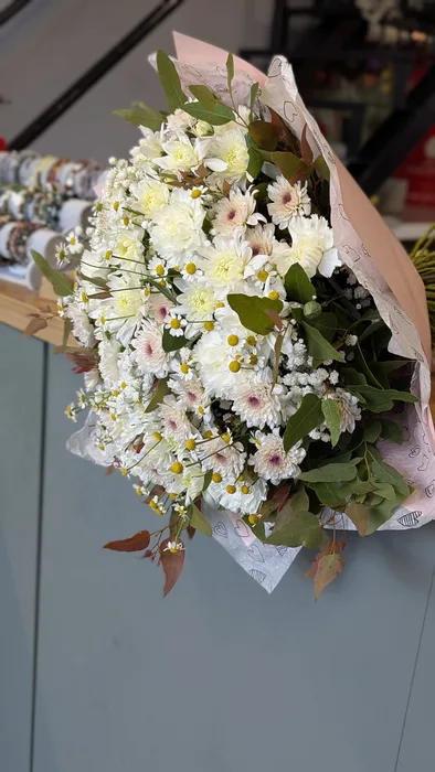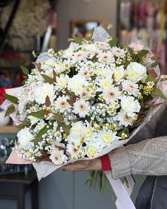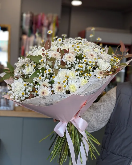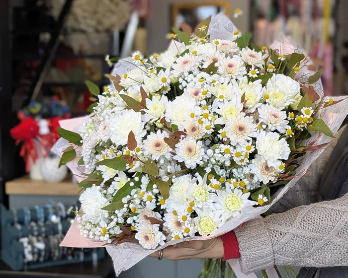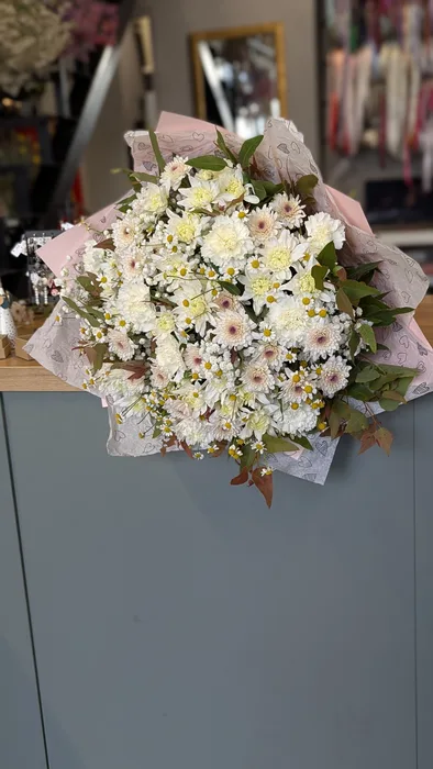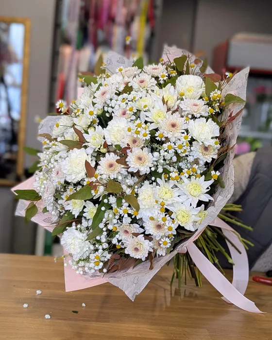 זר פרחים עם חרציות ובבונג