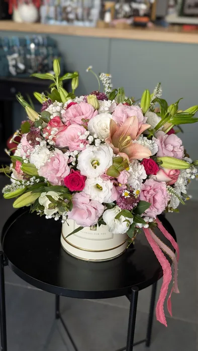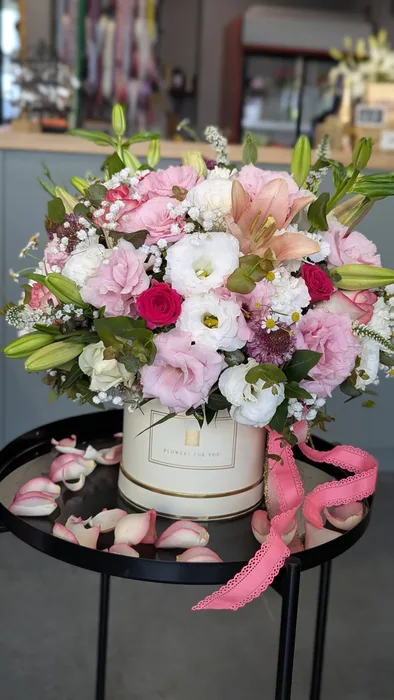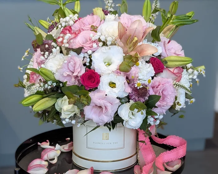 סידור פרחים בקופסא כולל: