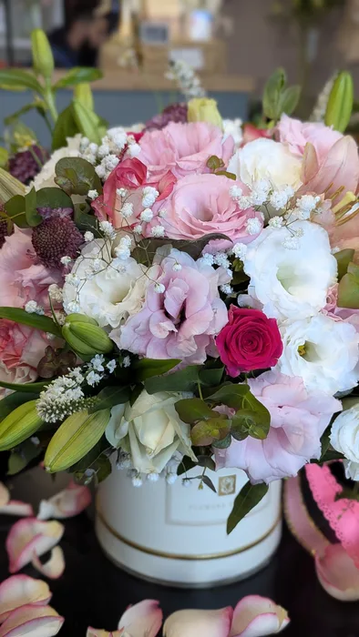 מגוון פרחים כמו ורדים, ליזיאנטוס, ליליה, תגית, בבונג, ורוניקה, גבסנית